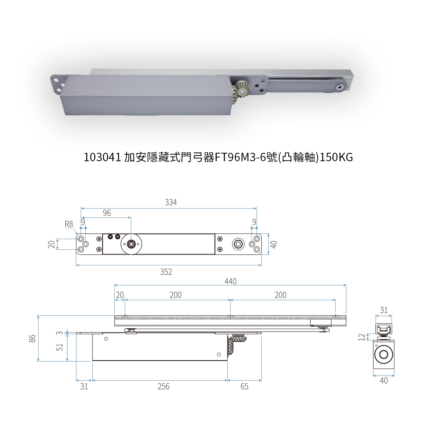 1030431 加安隱藏式門弓器FT96M 3-6號(凸輪軸)150KG